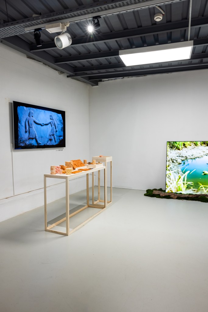 Sergimiz, yolculuğun kesitlerini inceleyerek ve en çok iz bırakma fikrine odaklanarak özellikle arkeolojik verilerin nesnel ifade biçimlerini araştırıyor. Kurbağa biçimli ritonlardan ilhamla skeuomorfizm üzerine düşündük ve kalıcılık ile parçalara ayrılmanın nesnel hali olan lahitlere, mezarlara ve mezar kalıntılarına bırakılan izlerin peşine düştük. Günümüzde arkeolojik nesne olarak tanımlanan birçok gündelik objenin oluşturulurken doğadan aldığı ilham, dönemler arası kullanılmış biçimler hikâyelerimizi anlatırken önemli eşlikçilerimiz oldu. Sergi hazırlık boyunca yaptığımız yolculuklar, çeşitli arkeolojik kazı alanlarını ve müzeleri kapsadı. 3D tarama teknolojileri ile arkeolojik nesnelerin yeniden biçim bulmasına odaklandığımız sergimizde, kelimeden görüntü, 3D nesne ve video üreten yapay zekâ araçları ve el işçiliğini birleştiren deneyler gerçekleştirdik, görüntünün evrilebileceği çeşitlilik üzerinde durduk.