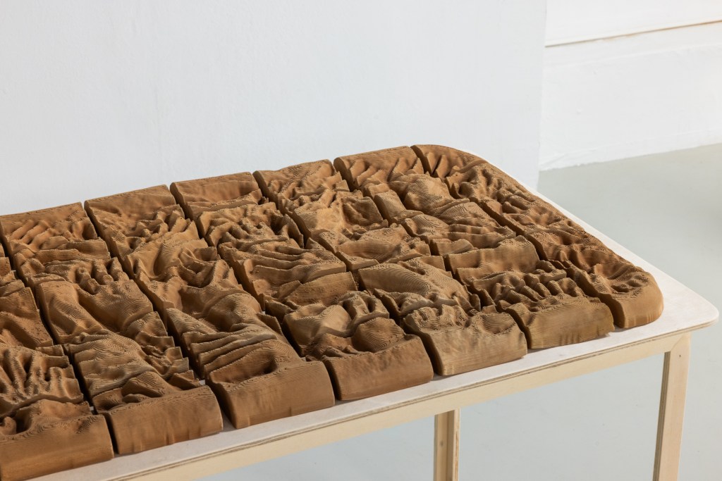 “Rest in Pieces”, arkeolojik verilerin ve yüzeylerinin hikâye anlatım biçimlerinden ilhamla oluşmuş kurgusal bir yolculuktur. İki sanatçı, beden ve mekânsal ilişkiler üzerine çalışmalarında rotayı bu defa ölüm ve kalıcılık ekseninde izlere, iz bırakmaya çevirdiler. Kelimelerden oluşan görüntülerin dönüşebileceği formlar üzerine çalıştılar. Böylece imgenin, zihinden kelimelere, kelimelerden imaja ve imajdan 3D nesneye dönüşümü, video, üç boyutlu PLA, reçine ve kil baskı, lazer kazıma gibi tekniklerle harmanlanıp, insan/makine çıktısı olarak izleyici ile buluşuyor.