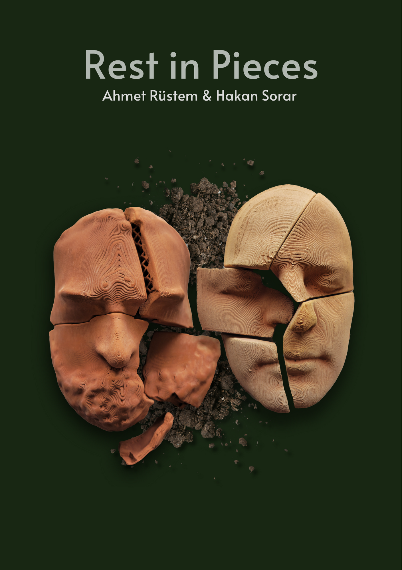 Kurbağa biçimli ritonlardan ilhamla skeuomorfizm* üzerine düşünen ikili Ahmet Rüstem ve Hakan, kalıcılık ve parçalara ayrılmanın nesnel hali olan lahitlere, mezarlara ve mezar kalıntılarına bırakılan izlerin peşine düşüyor. İkilinin sergi hazırlık boyunca yolculukları, çeşitli arkeolojik kazı alanlarını ve müzeleri kapsıyor. 3D tarama teknolojileri ile arkeolojik nesnelerin yeniden biçim bulmasına odaklandıkları sergide, kelimeden görüntü, 3D nesne ve video üreten yapay zekâ araçları ve el işçiliğini birleştiren deneyler yapılarak, görüntünün evrileceği çeşitlilik üzerinde duruluyor. “Rest in Pieces”, 3D kil baskı teknolojileri, oyun motorları, görüntü teknolojileri ile çeşitlenirken lahit yüzeyleri, rölyef paneller, ölü maskları gibi nesneler ile geleceğe bilgi aktarmaya çalışan bir müze taklidi yapıyor. İkilinin bu sergiyi oluşturmaktaki amaçları, arkeolojik verilere sanat perspektifinden bakmak, geçmişin izlerini yeniden yorumlayarak ihtimaller üzerine düşünmek, yapay zekâ araçlarının potansiyellerini incelemek ve bu araçların günümüzdeki kapasitelerinin kaydını tutmak.